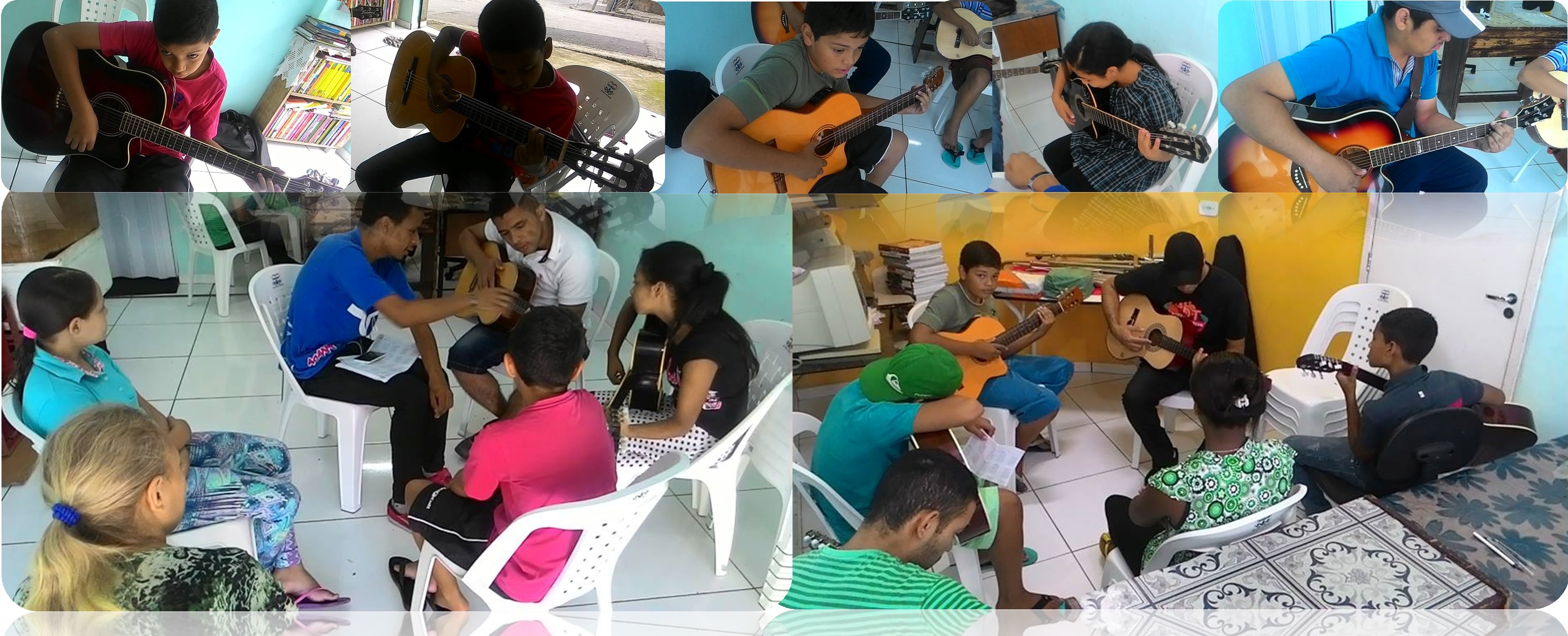 Reunimos jovens e adolecentes da comunidade para aulas de violão.