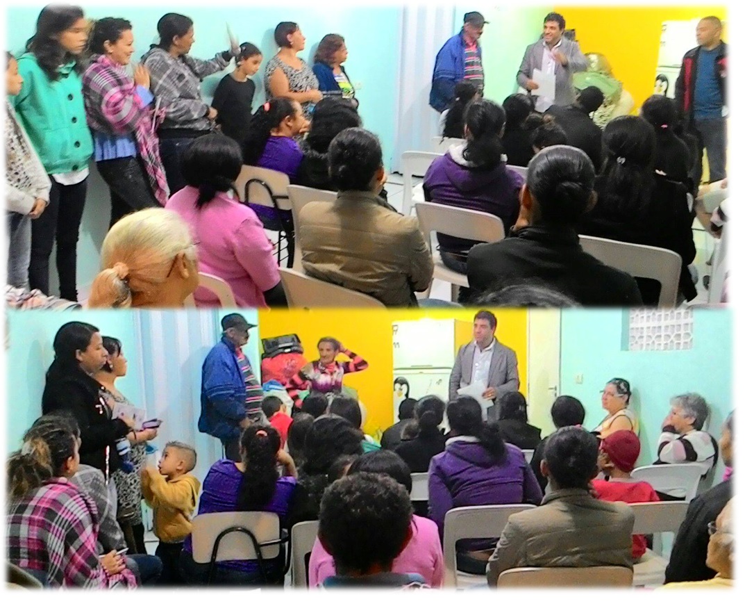 Primeira reunião no Jardim Maria Helena. O espaço foi cedido pela sr.a Keila Ramos moradora no bairro que conheceu a ASMAP e prontamente decidiu compartilhar o projeto junto aos moradores de sua regiã